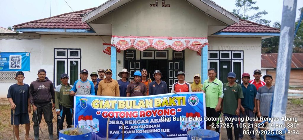 Rengas Abang, 5/12/2025. Desa Rengas Abang kembali melaksanakan Bulan Bakti Gotong Royong pada tanggal 5 Desember 2025. Kegiatan ini merupakan tindak lanjut dari arahan Bupati Ogan Komering Ilir untuk memperkuat kebersamaan, kepedulian sosial, serta meningkatkan kualitas lingkungan desa melalui kerja kolektif masyarakat.