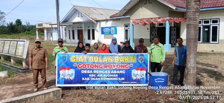 Rengas Abang, 7 November 2025 — Pemerintah Desa Rengas Abang, Kecamatan Air Sugihan, Kabupaten Ogan Komering Ilir (OKI), melaksanakan kegiatan Bulan Bakti Gotong Royong Masyarakat (BBGRM) dengan penuh semangat dan antusiasme. Kegiatan ini diikuti oleh Kepala Desa, seluruh perangkat desa,…
